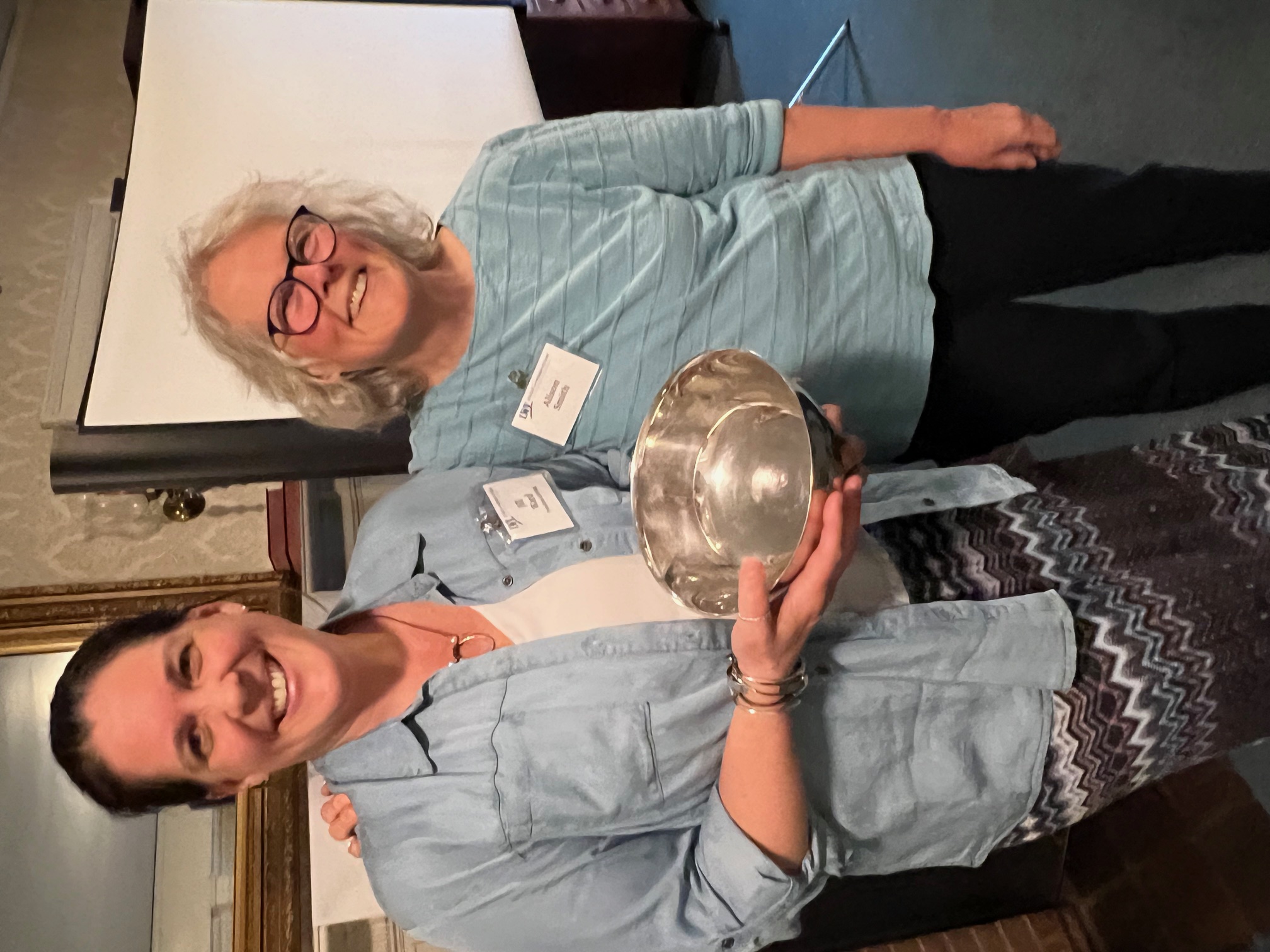 A smiling Jill Ward (holding the award bowl in the photo) has been the president of the LWVME since 2015 and the driving force behind the immense changes that the LWVME has implemented recently. As if this wasn’t enough to keep her busy, she is also a law professor and Director of the University of Maine School of Law’s Center for Youth Policy and Law. She is a leading advocate for juvenile justice reform in Maine and nationally, and she’s raising two kids.